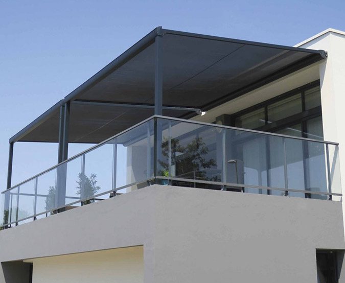 Sa structure en aluminium prévoit l’installation d’un store ou d’une toile en acrylique en guise de toit pour un confort optimal. La toile est fixée par un système de ressorts invisibles. En position rétractée, la toile est réceptionnée et est protégée dans un coffre compact.